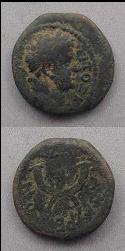 Two cornucopiae in saltire; between horns, cruciform ornament, with pellet in each corner